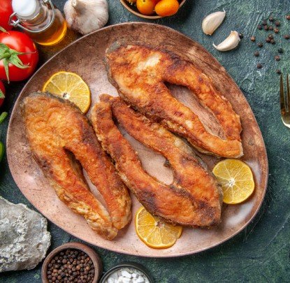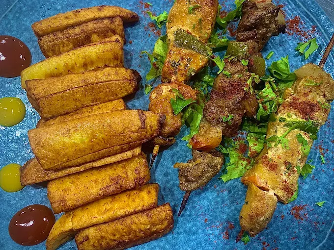 Capitaine braisé au four 3000 FCFAFilet de capitaine, marinade d’ail, citron, épices, herbes fraîches, cuit au four.